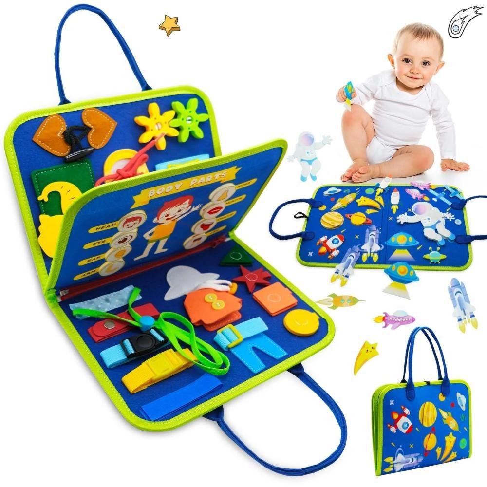 اللوحة المشغولة أو "لوحة الأنشطة" هي أداة تعليمية رائعة للأطفال الصغار، خاصة في مرحلة ما قبل المدرسة. يتم استخدامها لتطوير العديد من المهارات المهمة مثل المهارات الحركية الدقيقة، التنسيق بين اليد والعين، والقدرة على حل المشكلات. يمكن أن تشمل الأنشطة على هذه اللوحة: